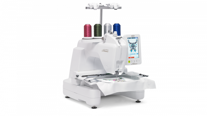 With its single needle and free arm, the Alliance is built to embroider items and three-dimensional spaces that are difficult for typical embroidery machines, such as inside pockets, embroiderable stuffed animals, or even shoes.