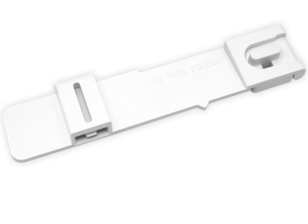Folds and attaches 12 or 12.7 mm (1/2") wide bias tape in one easy step. Use either self-made or store-bought bias tape up to 1/2" in width).